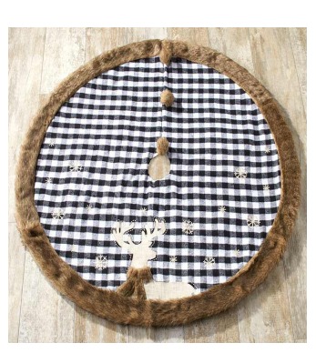 Brown Faux Fur Cuff w/Deer Design on Black & White Buffalo Plaid