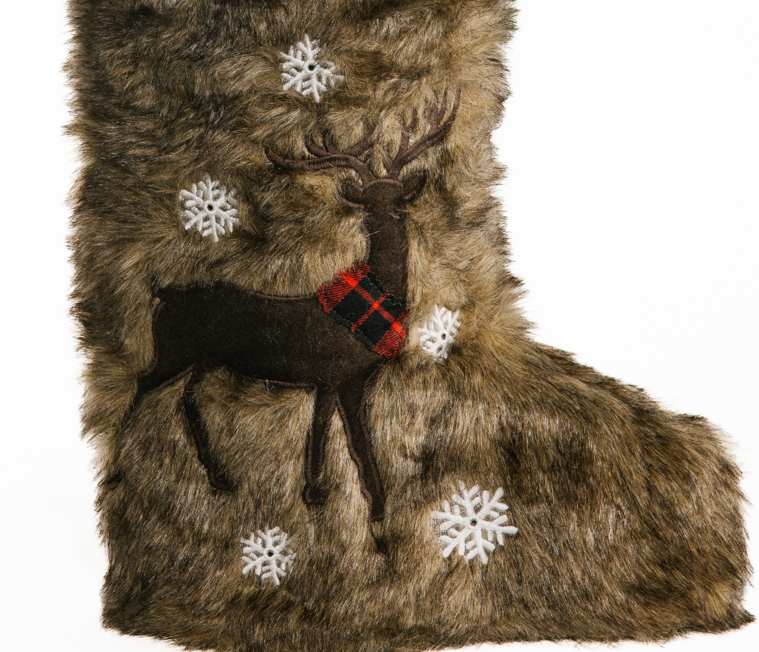 Red & Black Buffalo Check Cuff with All Faux Fur Body with Deer Design and cool LED Lights in Snowflakes